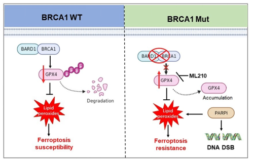 BRCA1作为最常见的突变基因之一,它的功能缺失在多种肿瘤的发生和发展中起着关键作用,尤其是在卵巢癌和乳腺癌中。大约20-30%的卵巢癌或乳腺癌具有BRCA1突变。BRCA1缺失会触发同源重组(HR)修复缺陷,从而导致基因组不稳定和PARP抑制剂(PARPi)相关的合成致死性。尽管BRCA1在DNA修复和复制中的作用已得到广泛研究,但其超出基因组保护的肿瘤抑制功能仍知之甚少。